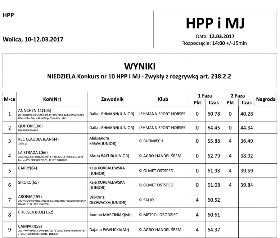 | 60 | Henya de L'Espoir | Łukasz | Krajewski | KJ Agro-Handel Śrem |