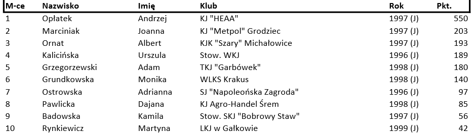 RANKING JUNIORZY PZJ na dzień 31.08.14