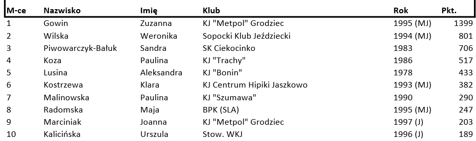 RANKING KOBIETY PZJ na dzień 31.08.14